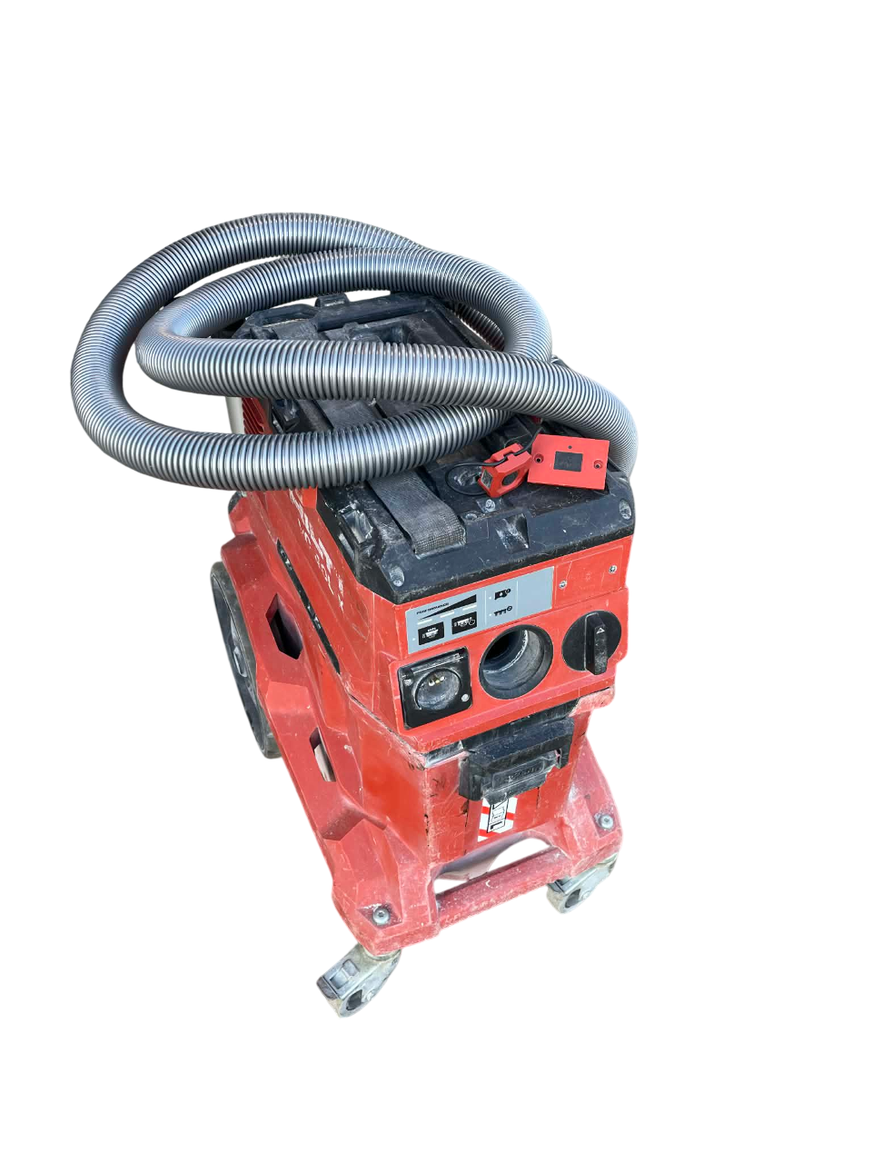 Výkonný vysavač prachu s velkou nádobou a přítlačnou tyčí pro připojení k nářadí s elektrickým pohonem a pro úklid na staveništi (za mokra a sucha), nádrž 30 l.